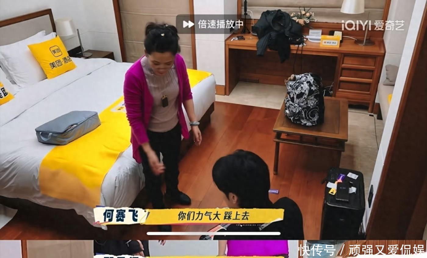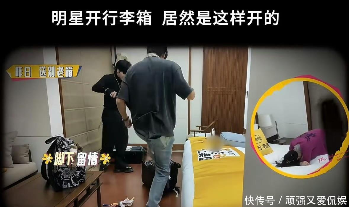 当节目组最后搬出一个同款新箱子的时候,何赛飞摸着锃亮的新箱子苦笑:“这纹路都没磨出来……”可以看出她对自己老箱子的思念。
